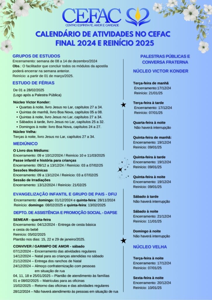 Fim de ano:veja nossa programação de encerramento das atividades 2024 e reinício em 2025.